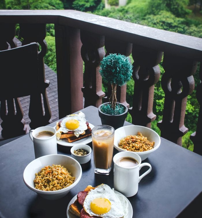 It’s important to expose yourself to natural light as close to waking as possible to increase your body temperature, energy levels and alertness. The full-spectrum light that the sun emits starts your body clock and boosts your vitamin D production. To motivate yourself to get into the sunlight, treat yourself to a yummy breakfast in the sun.