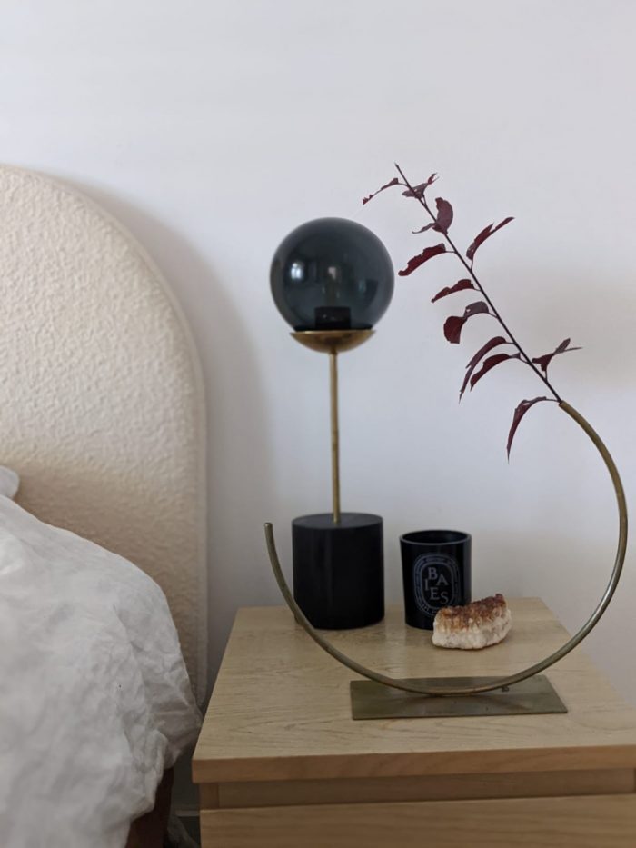 Our recent addition of the boucle bedhead has really changed the vibe of the bedroom as it is tactile and really emphasises the bed as a place to relax beyond sleeping. Anyone who knows me knows how much I love my sleep. This simple addition means I can linger for longer in bed, and so much more comfortably. We have a lovely king size bed and the four of us come together as a morning ritual for a cuddle and chat before our day begins.