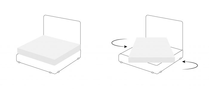 To help minimise body impressions, we recommend that you rotate your new mattress end-to-end every two weeks during the first four months, and monthly thereafter. This will help to even out the settling across the surface of the mattress. Always get someone to help you rotate the mattress to prevent personal injury and damage to the mattress.. If your mattress has handles, these can be used to rotate it, but are not designed to carry the full weight of the mattress. Do not use the handles to lift and carry the mattress, as this may cause damage and will void the guarantee.